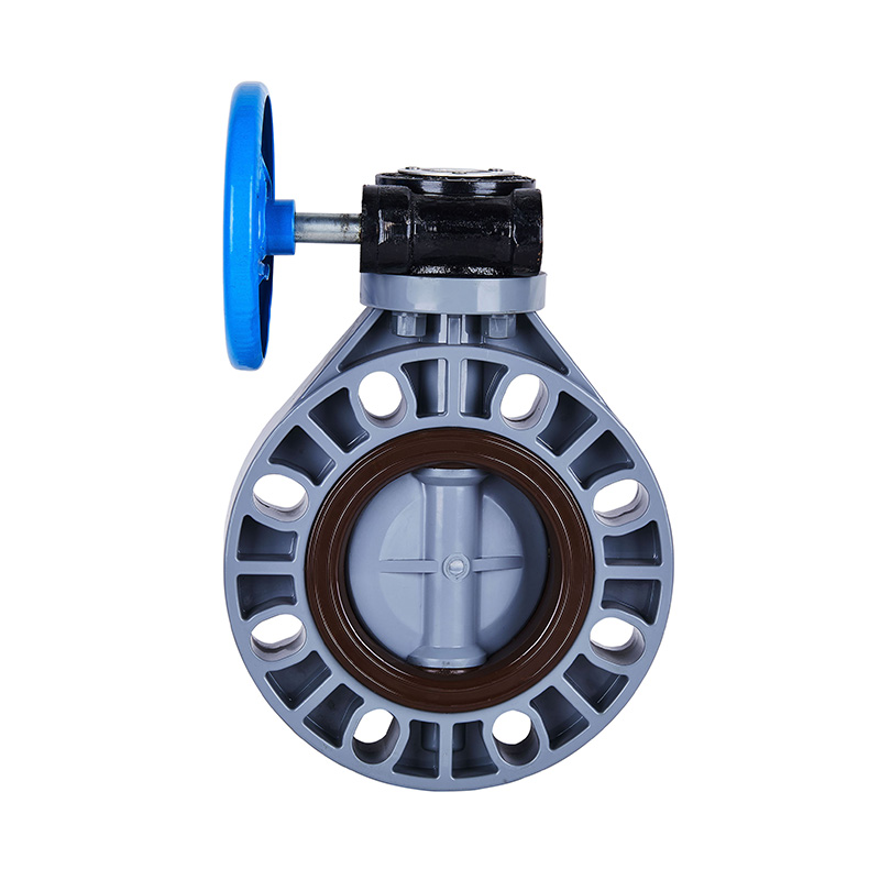 Tùy chỉnh Thương hiệu mới PVC-C Worm Gear Smooth Stem DN40–1000 Van bướm, màu xám, DIN, JIS, Tiêu chuẩn ANSI, Van nhựa mặt hoành 4 inch Tiêu chuẩn ANSI