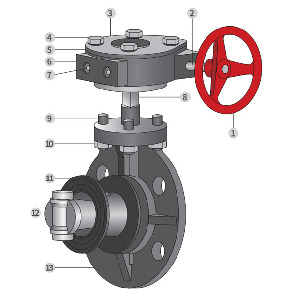 Bản vẽ chi tiết lắp ráp bướm loại bánh răng sâu