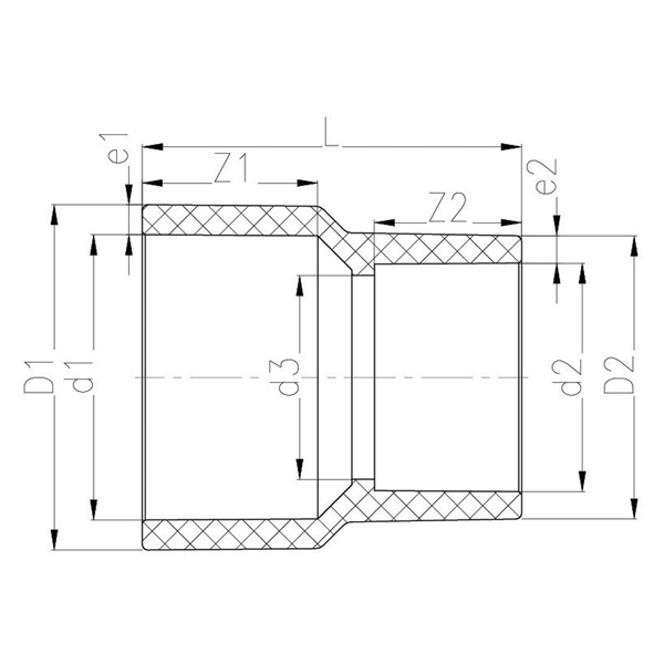 | DN | D1 | D2 | d1 | d2 | d3 | L | Z1 | Z2 | e1 | e2 | ||||||||||||||||||||