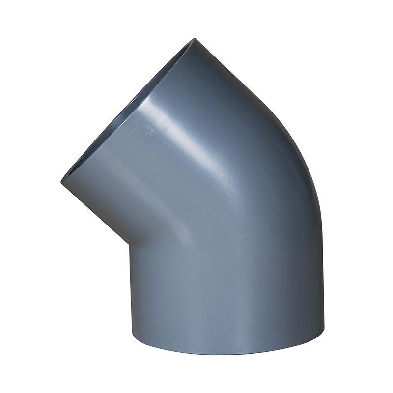 Cực bền màu xám nhạt PVC-C 45° Hình xòe tay, Phụ kiện ống nhựa DN15-DN600 kích thước tiêu chuẩn chuyên nghiệp, Khuỷu tay 45° phù hợp PVC-C