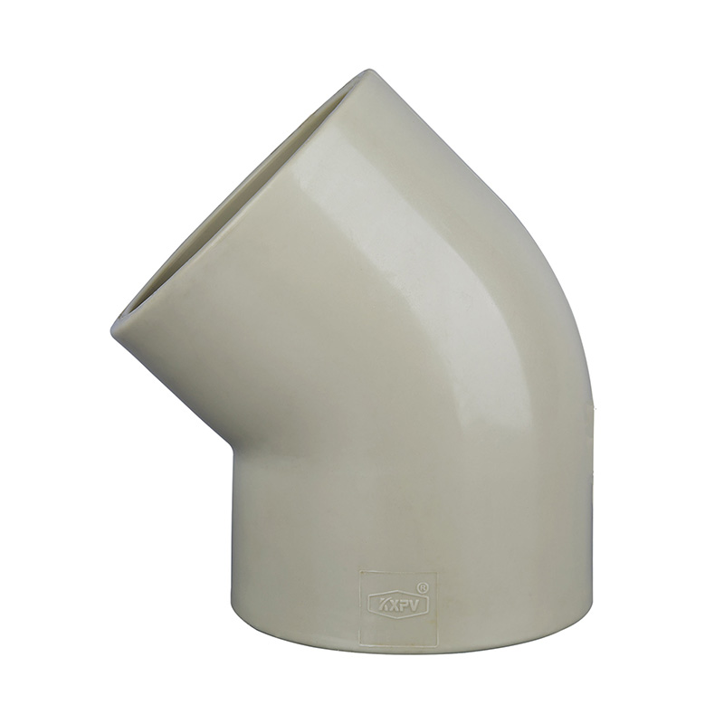 Ổ cắm nóng màu vàng đất siêu bền 45 ° Hình dạng bằng nhau Khuỷu tay Kích thước tiêu chuẩn chuyên nghiệp DN15-100 Phụ kiện ống nhựa Khuỷu tay PPH 45 °