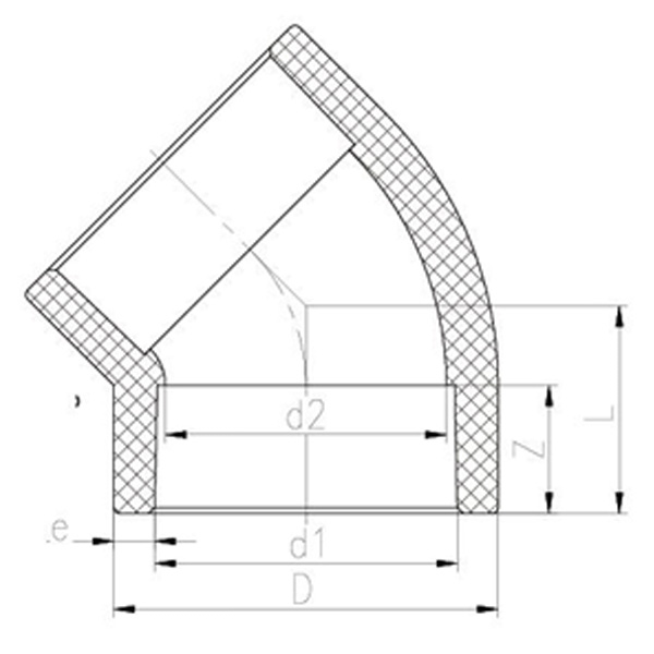 Ổ cắm nóng PPH 45 ° Khuỷu tay DN15-100 GB Tiêu chuẩn