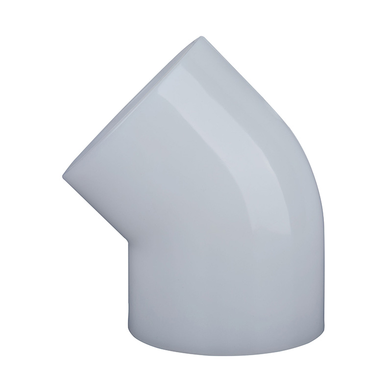 Khuỷu tay PVDF trắng siêu bền 45 ° Hình dạng bằng nhau Kích thước tiêu chuẩn chuyên nghiệp DN15-DN100 Phụ kiện ống nhựa Công thức PVDF Khuỷu tay 45 °