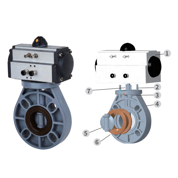 Van bướm tự động bằng khí nén PVC-C, Phốt trung tâm, Phốt mềm, DN32-1000, Van bướm nhựa công nghiệp và gia dụng